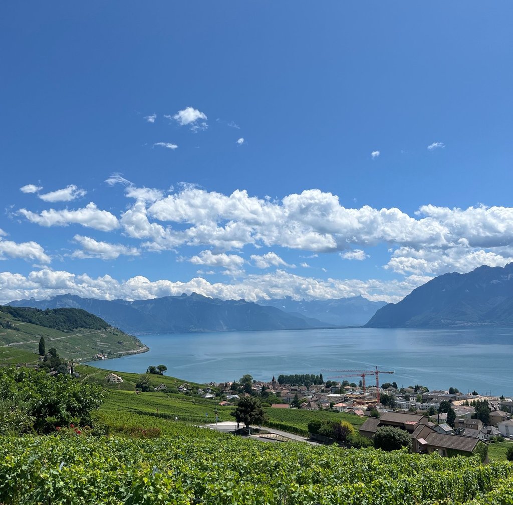 You’re surrounded by vines, Lake Geneva is below, the Alps lurking beyond. Pretty villages (Aran, Epesse) dot the landscape. It’s utterly, utterly captivating.