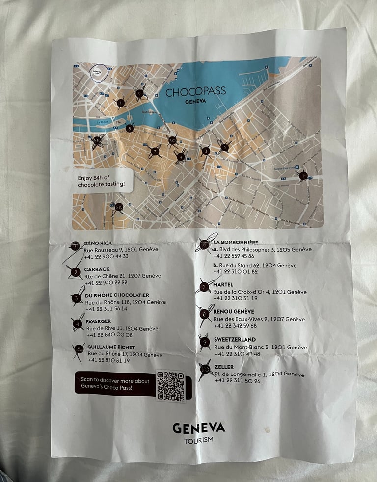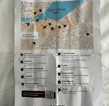 The pass covers any one 24 hour period. Activated at the first chocolatier reached. A number of the chocolatiers are to be found in the old town or nearby. Others require more effort. Many have a second or even third shop not participating. We decided to visit all 10, including the furthest away – La Bombonniere – which had 2 shops partaking. You decide which of the two you wish to visit.
